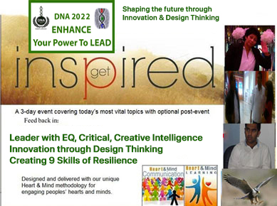 Using Heart & Mind Learning to Experience Leadership with Critical, Creative and Emotional Intelligance, Employee Engagement for Creating Happiness, and Innovation through Design Thinking .
